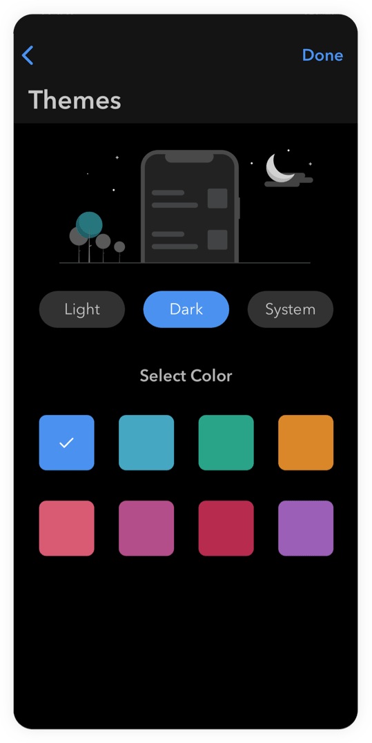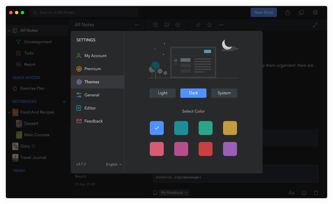 Apply UpNote’s elegant themes to your taste. Dark themes work excellently for those who prefer distraction-free mode.