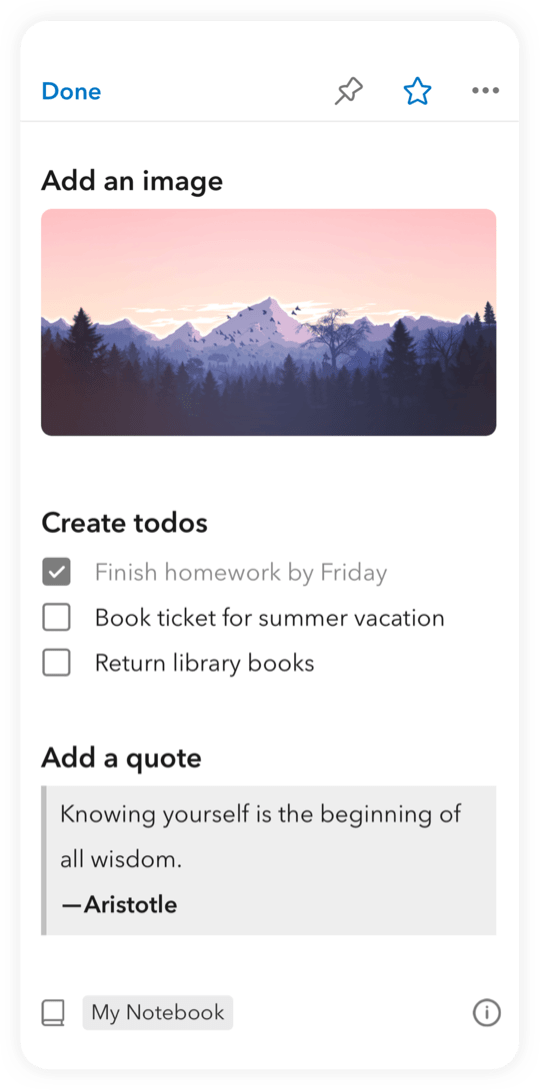 Access the Focus mode, where all the notes, notebooks and menus are hidden, so you can work in a distraction-free environment.