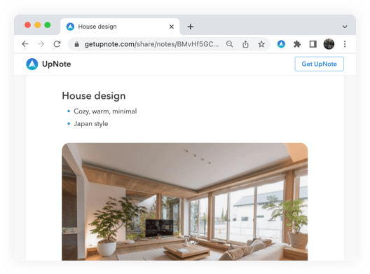 Quickly save any web page from your browser with UpNote’s extension available for Chrome, Safari and Firefox.